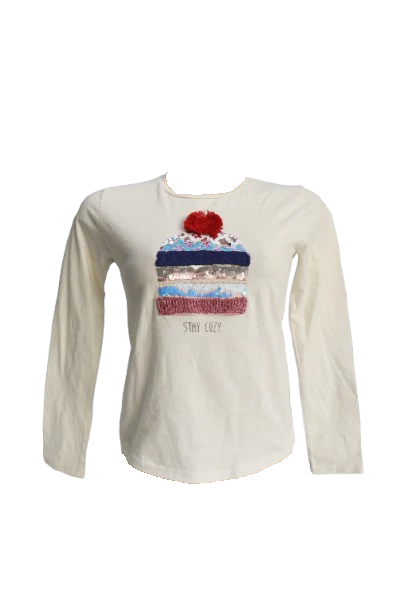 Modelagem: Camiseta infantil manga longa com estampa de lantejoulas