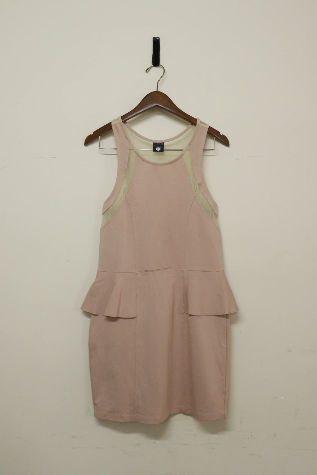 Modelagem: Vestido tubinho rosê liso, sem manga, transparência por conta do tule na parte frontal e nas costas